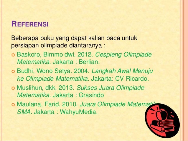 Seringkali kita mendapati soal-soal olimpiade di internet, namun semua hanya sebatas soal. Atau kalaupun ada penyelesaiannya kita kurang memahami. Nah dengan adanya buku panduan olimpiade ini diharapkan dapan membantu para guru dalam membimbing siswanya. Berisikan uraian materi matematika yang biasanya digunakan dalam penyelasain soal olimpiade, contoh soal plus penyelesaian, dan soal-soal. Sebagai bahan persiapan menyongsong event Olimpiade Sains Nasional khususnya mapel Matematika jenjang SMA, berikut ini akan saya bagikan materi yang diujikan di dalam OSN matematika SMA. Materi soal-soal olimpiade matematika SMA biasanya bersumber pada buku-buku pelajaran, buku-buku penunjang dan bahan lain yang relevan.